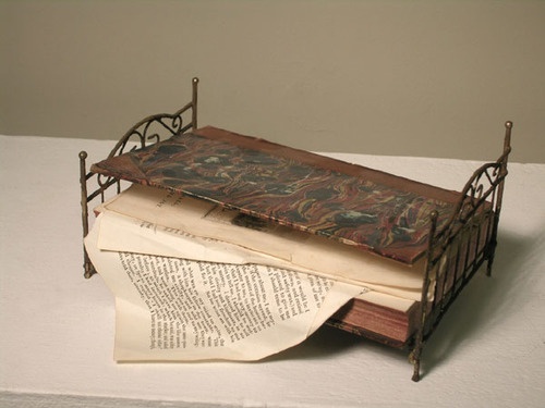 Zoe, library apprentice at SFCB, created a Cabinet of Curiosities to house small artist’s books (some only an inch big!). The books sound pretty cool themselves, but what a handsome home they have in this Bed Bath & Beyond medicine cabinet: