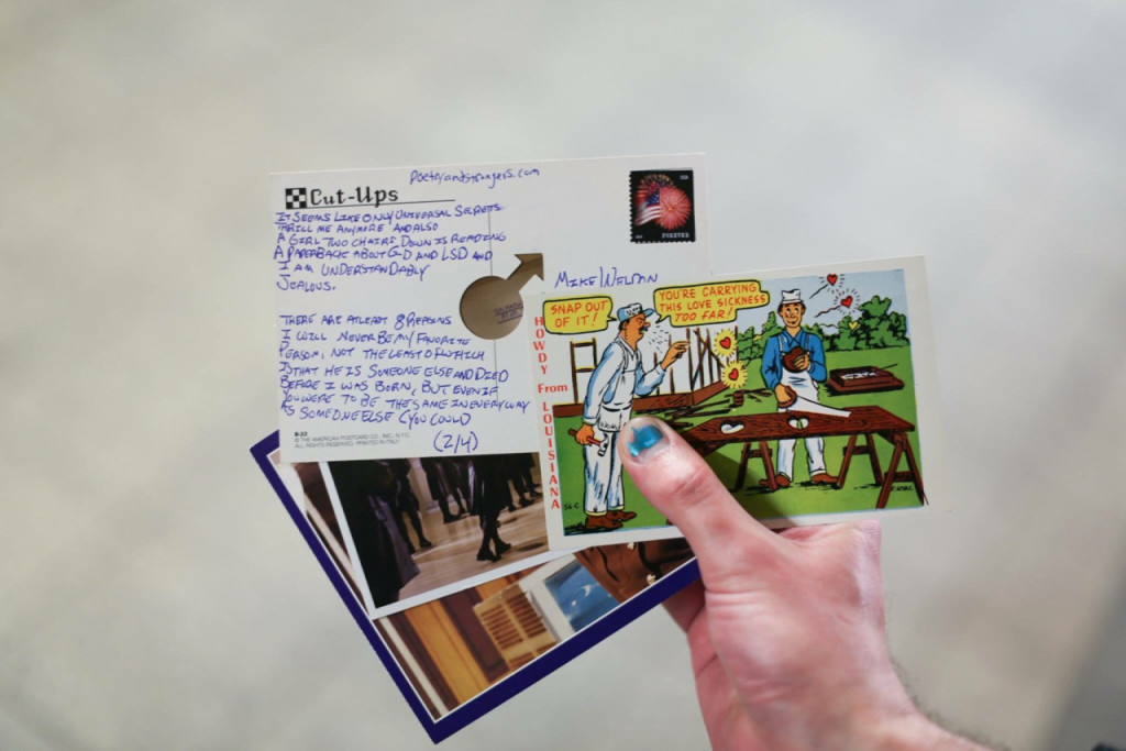 “I’ve always liked to do nice things for strangers. I worked in the mail room at my college dorm, and whenever I emailed a package notification, I’d always add a little something extra. Like an awesome shark pic. Or a link to Japanese jazz. Lately I’ve been doing this thing where I buy really weird antique post cards, write poems on them, and mail them to random people I find in the white pages. The first time I sent one, I added a full-page disclaimer because I was worried some old person would think it was from ISIS and call the cops. I basically wrote: ‘Don’t worry. It’s art. Everything’s cool. You won’t be hearing from me again.’”